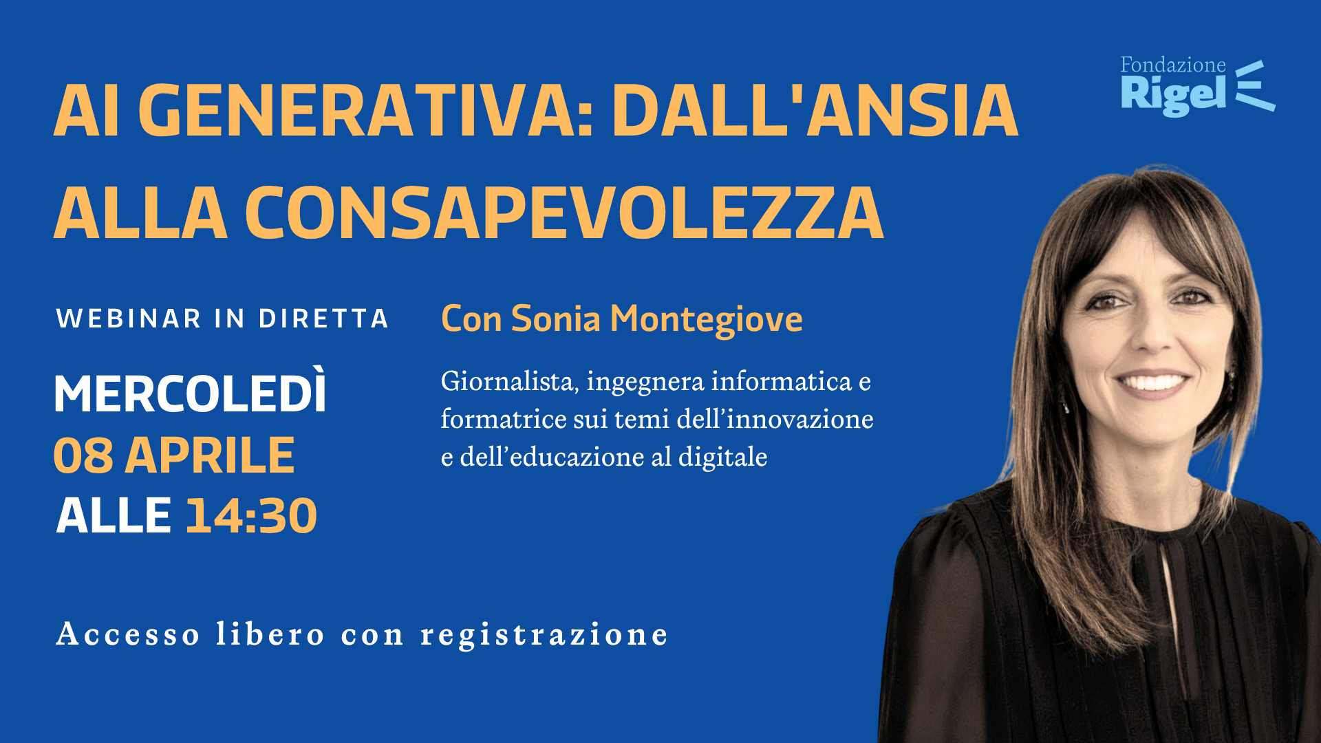 Il webinar offre uno spazio di riflessione critica e concreta sui potenziali benefici dell’AI generativa, quando utilizzata in modo responsabile, consapevole e sicuro, e sui potenziali rischi che vanno dalla dipendenza tecnologica alla possibile perdita del pensiero critico, fino ai bias algoritmici.