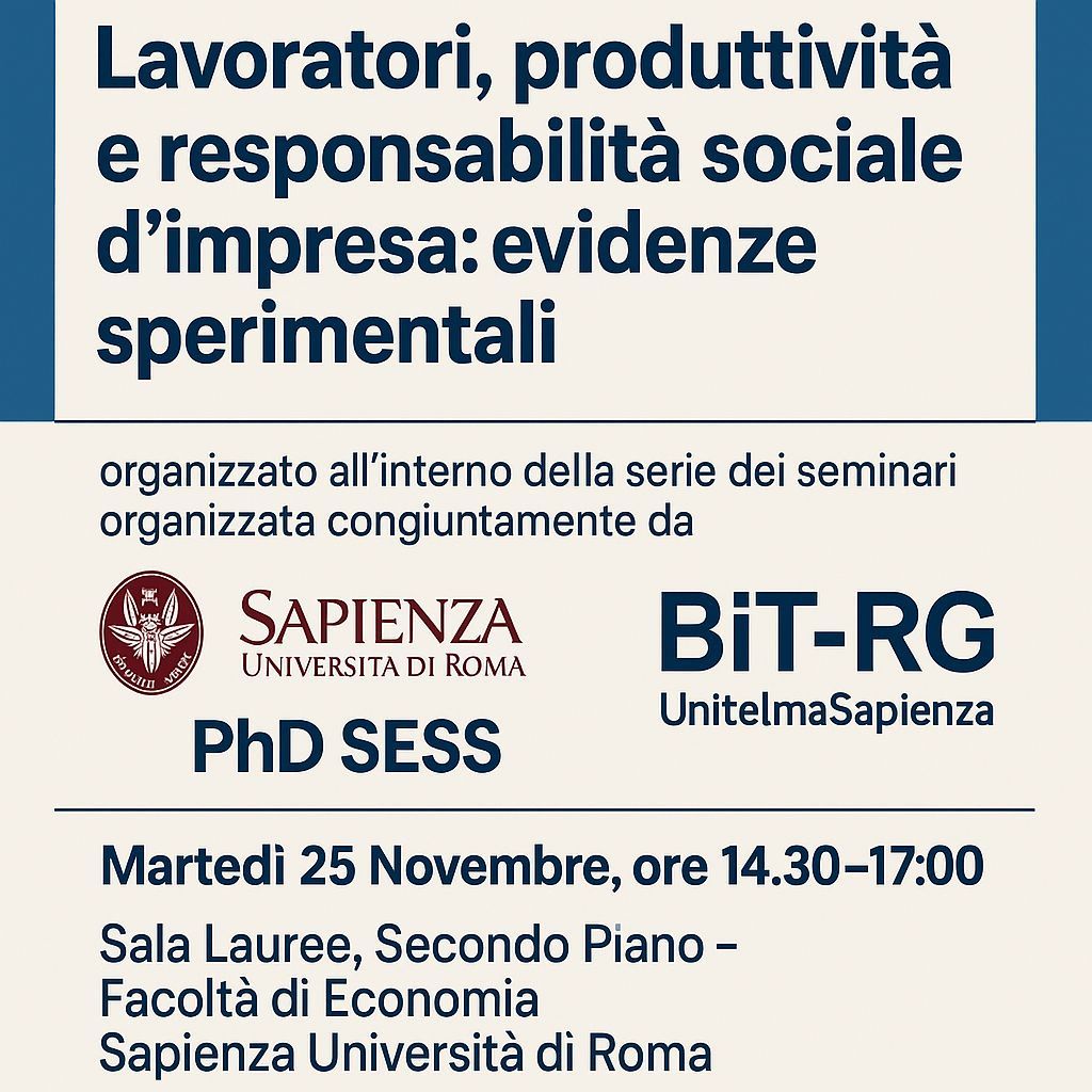 On Tuesday, November 25th, the workshop “Lavoratori, produttività e responsabilità sociale dell'impresa: evidenze sperimentali” will take place,...