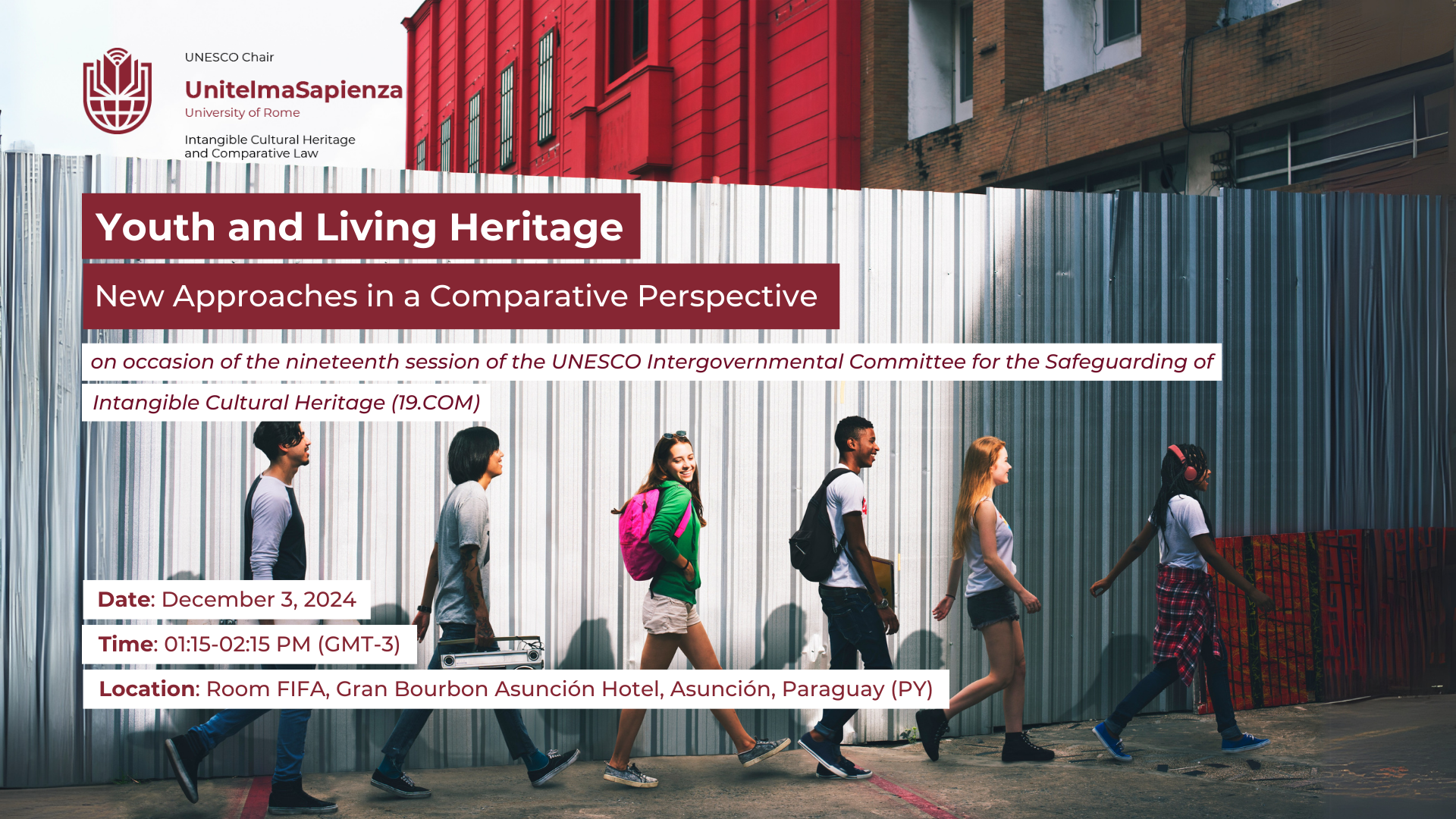 As part of the activities planned for the week of proceedings, the UNESCO Chair on Intangible Cultural Heritage and Comparative Law at the University of Rome Unitelma Sapienza has organized, together with international partners from Turkey, Uganda and Brazil, a brainstorming session on the theme “Youth and Living Heritage: New Approaches in a Comparative Perspective”, with experts from all over the world, from Latin America to the Middle East, from Canada to sub-Saharan Africa, who will bring their experience on the topic.